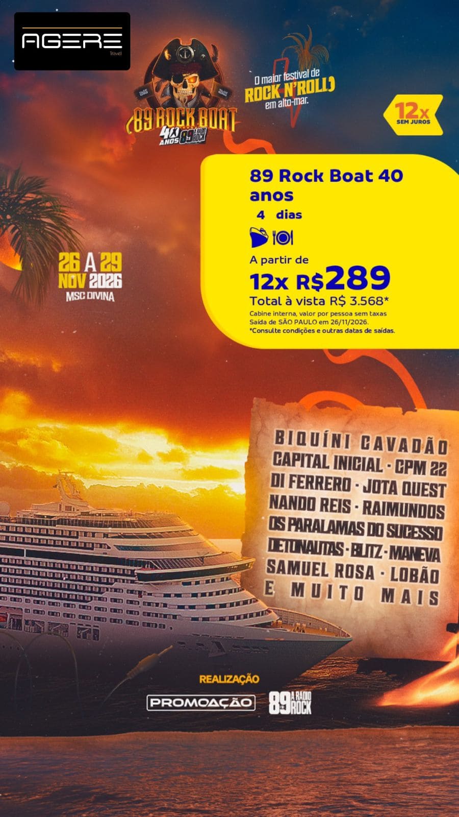NOVEMBRO 2026 – 89 ROCK BOAT | 40 ANOS